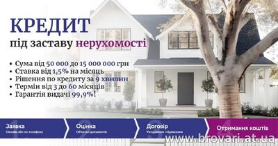 Кредит під нерухомість і автомобіль до 15 млн. грн. Кредит під заставу квартири під 1,5% на місяць. Кредитування без довідки про доходи під заставу нерухомості. Кредит під заставу будинку без довідки про доходи