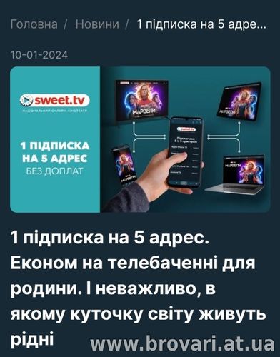 Sweet_TV дає круту можливість родинам економити на телебаченні .Адже 1 підписку можна підключити одразу на 5 різних адресів .