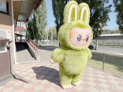 Надувной костюм Лабубу компании Слон изготовлен из мягкого, приятного на ощупь искусственного меха.